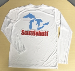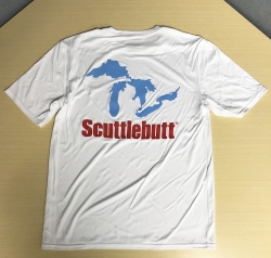 All Shirts are Port & Company brand and are made from quality wicking fabric - the perfect material to keep you cool on hot days on the boat! They come with the GLS logo on the front breast and a large "Scuttlebutt" image on the back.